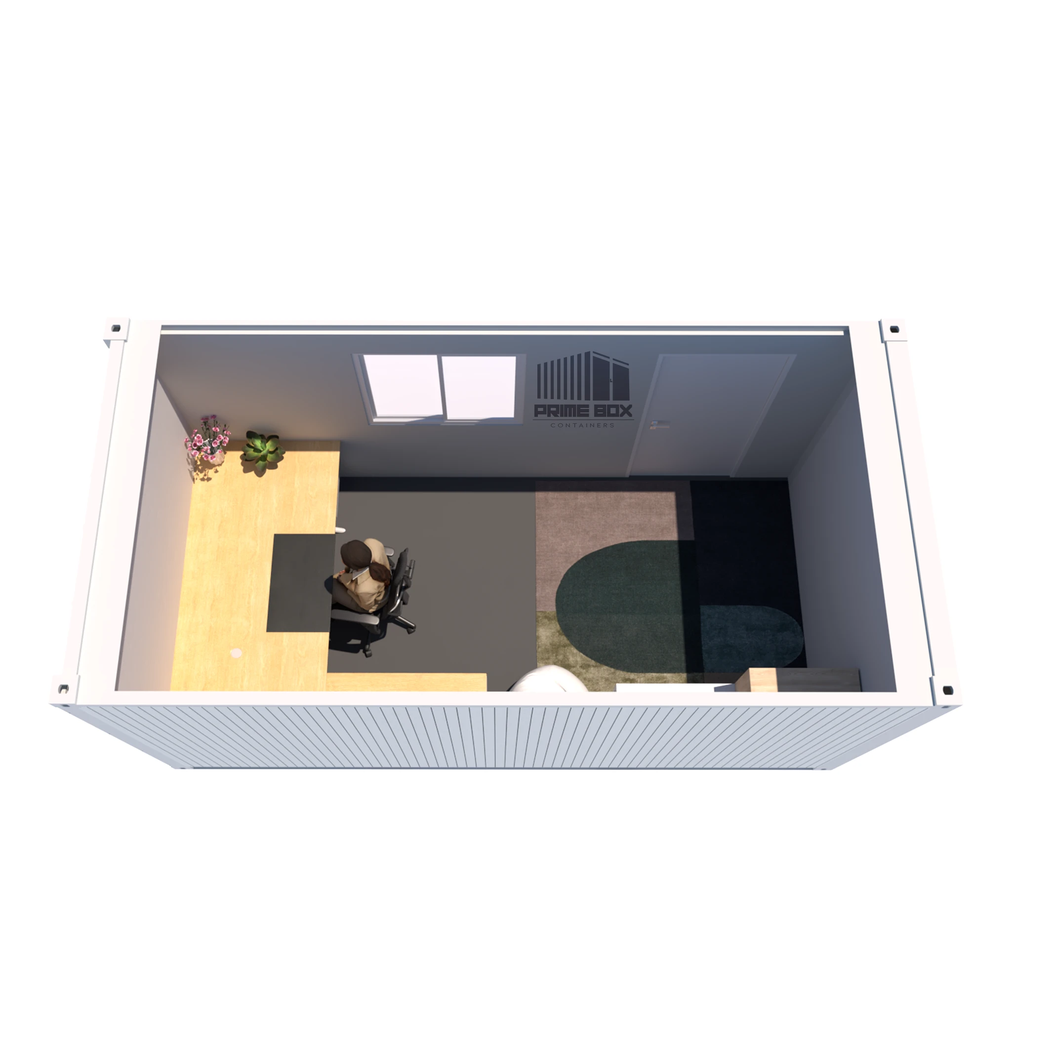 Container birou 5.00 x 2.40 x 2.60, realizat integral în fabrica noastră, gata de amplasare oriunde ai nevoie. Aceste spații sunt ideale pentru șantiere, parcări, centre logistice, sedii temporare sau chiar soluții permanente. Fabricate din materiale de calitate superioară, containere birou sunt izolate termic și fonic, complet echipate cu instalații electrice, climatizare, ferestre PVC și finisaje profesionale.